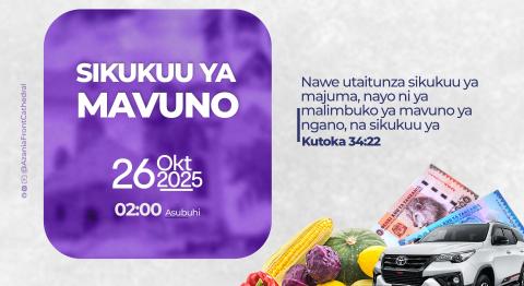 Wapendwa Washarika, tunapenda kuwakaribisha katika ibada maalum ya Sikukuu ya Mavuno kwa mwaka 2025 itakayofanyika katika viwanja